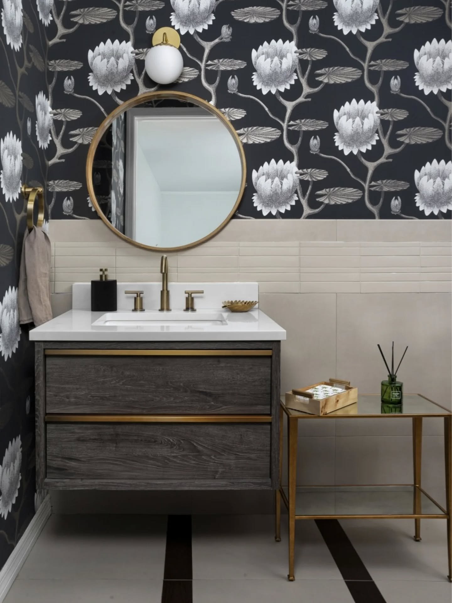 Today we’re featuring this powder room from our Florida design studio, and it’s one of our forever favorites. We used the Cole & Son "Summer Lily" wallpaper @cole_and_son_wallpapers —yes, the one