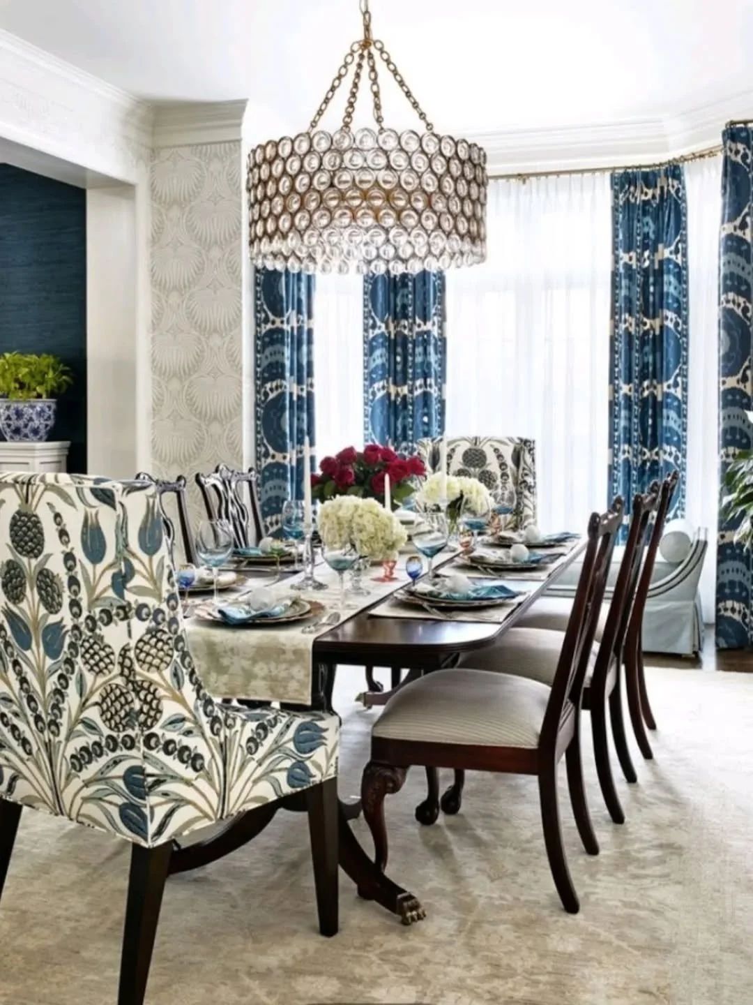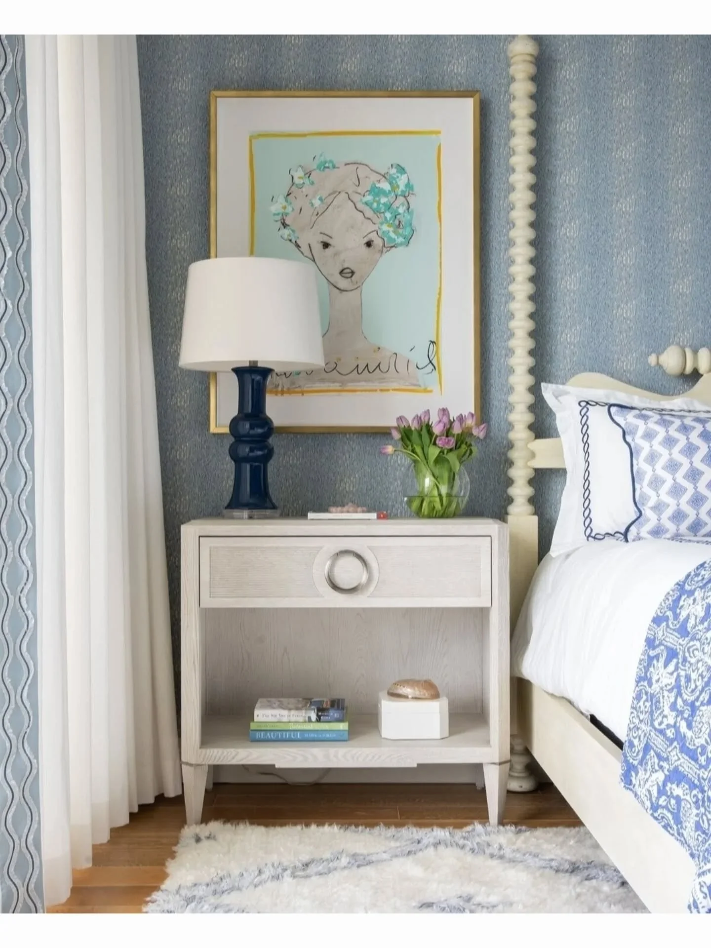 Designing this guest bedroom was such a joy for our St. Petersburg office. Layering soft sky tones, rich navies, and everything in between created a space that feels both serene and sophisticated.
